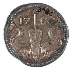 Präglad för svenska amiralitetet 1784, över generalamiralen Henrik af Trolle (1730 -1784).
