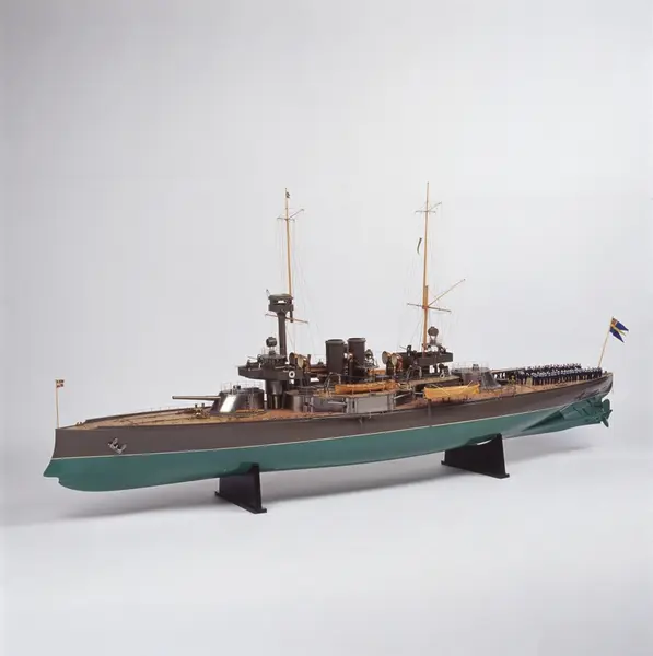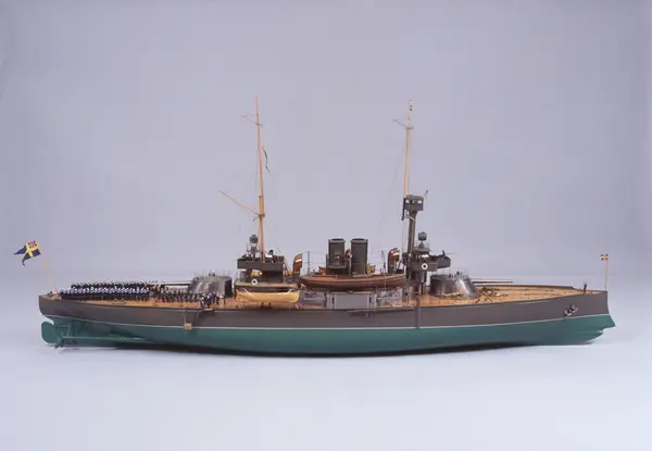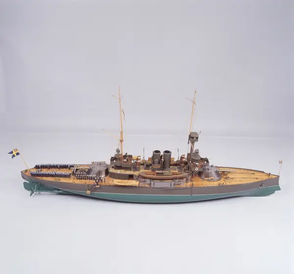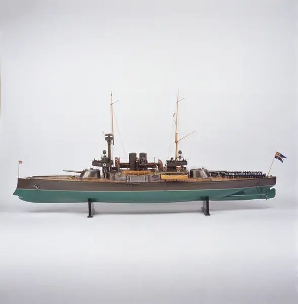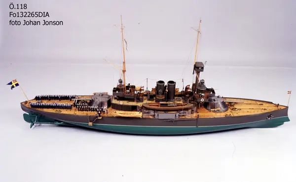 - Modellen tillverkad vid Karlskrona Örlogsvarv. Var utställd i Flottans paviljong på Allmänna konst- och industriutställningen i Stockholm 1897.