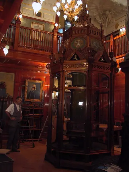 - Ritad av Daniel Carlsson och byggd till Allmänna Konst- och Industriutställningen 1897 där den var placerad i Telefon AB LM Ericssons utställning i stora maskinhallen. Föremålet ingår i samlingen Lars Magnus Ericssons minnesrum (TM45656, TeM60000 - TeM61180).