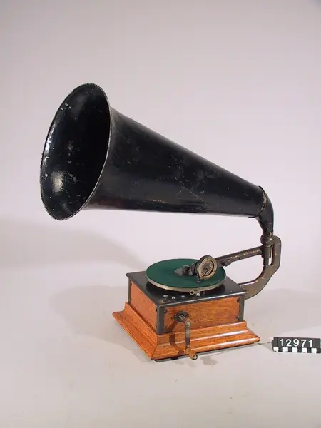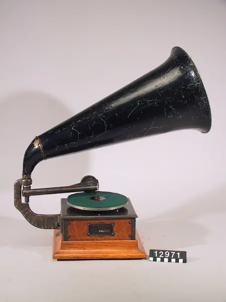 - Inköpt på auktion tillsammans med TM 12.971-12.983 för 10.25 kr. Scouting experimental typ 5, 1917 Victor R (kallad "Royal" i reklamen litteraturen) var en billig fonograf introducerades 1902. Det var tänkt som en inledande modell för prismedvetna köpare, och innehöll en liten 7 tum skivspelare Det såldes nya för $ 15.00, och tillverkades till 1903, då "R" blev Victor Z och sedan år 1905, Victor I. Ett stål horn var standard . Exakt produktions siffror är okänd, men baserat på kvarvarande exemplar, antas vara cirka 53.000 enheter under 2 års sikt.