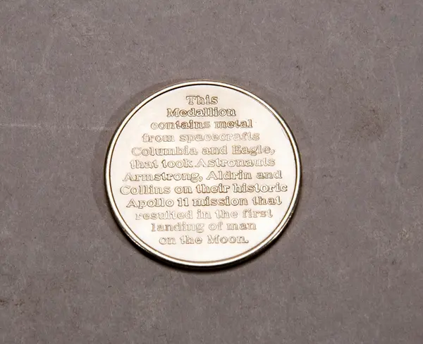 Medaljen är tillverkad med tillsats av material från en bult till en värmesköld från kommandomodulen från Apollo 11. Den slogs i 200000 exemplar för NASA till minne av den första månlandningen.