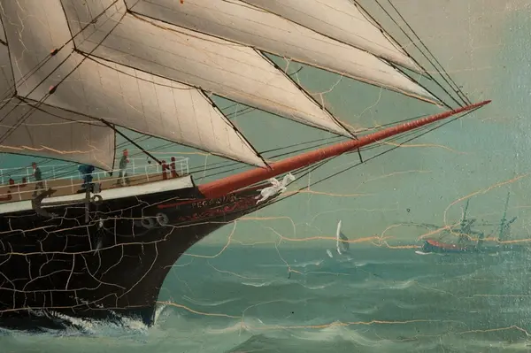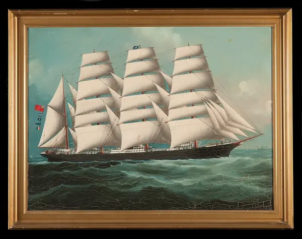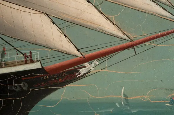 Målningen bör vara utförd mellan 1884 och 1897, då Pegasus reducerades till tremastad bark.