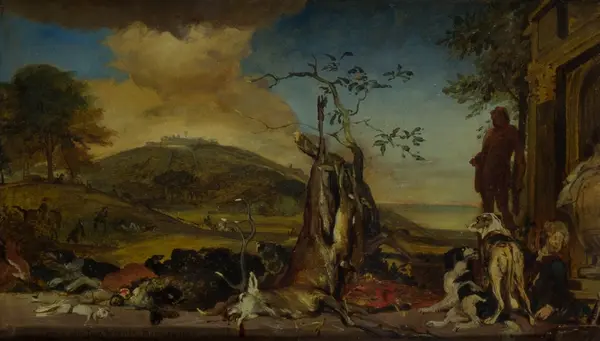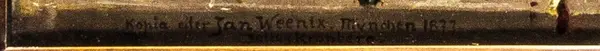 - Oljemålning utförd av Julius Kronberg i München 1877, kopia av Jan Weenix målning, som 1877 fanns i äldre Pinakoteket i München. Skänkt till Nordiska museet 21/11 1921 av Wilhelmina von Hallwyl, Stockholm.