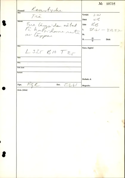 I Vasa, Undre batteridäck, balk 23-24, babord, Längd från för: 3861-4027- FyndplatsI Vasa, Undre batteridäck, balk 23-24, babord