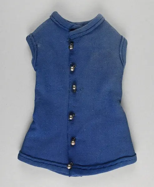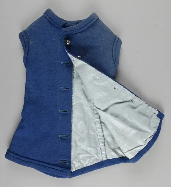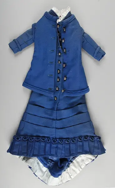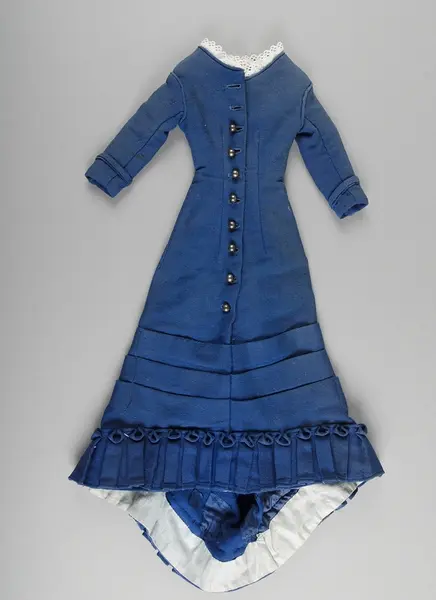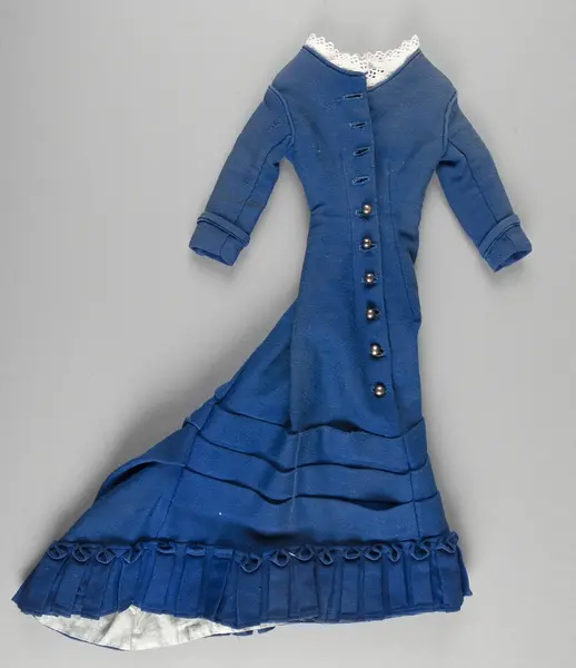 Plaggen hör till docka som har tillhört givarens mor, född 1862, gift med direktör Hagelin, Uppsala. Hon fick dockan 1869-70.