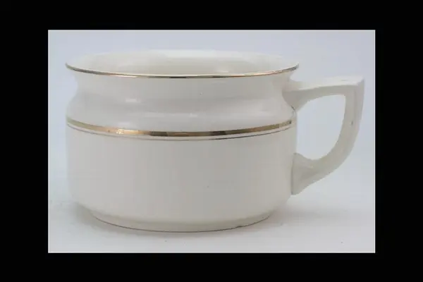 "Nattkärl, i vitt porslin med guldränder som 1.782. H 12 cm, D 18 cm."
