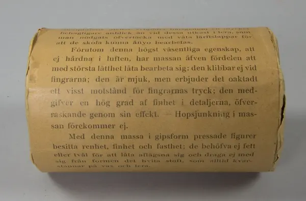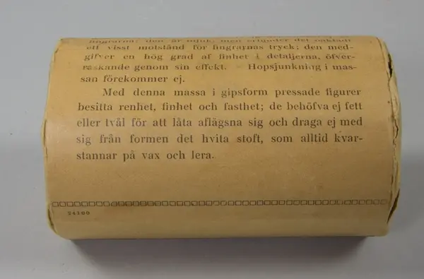 - Plastelina tillverkad av Wilhelm Becker AB, Stockholm1900-1920, uppskattat. Har använts av Julius Kronberg. Skänkt till Nordiska museet 21/11 1921 av Wilhelmina von Hallwyl.