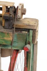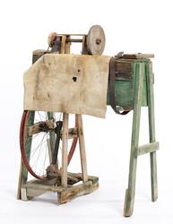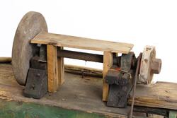 - Slipmaskinen tillverkades och brukades av Gunnar Valfrid Persson, eller Halle-Pers skräck" som han också kallades eftersom han sades vara en framgångsrik slagskämpe. Denna maskin för slipning av knivar och saxar tillverkade han runt 1945, och använde den till mitten av 1970-talet.
