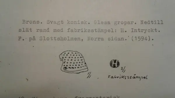 - Fyndnummer1594 (Fyndjournal I för Kronobergs slottstuin, fältfyndnummer 1 - 1673)