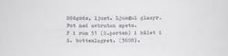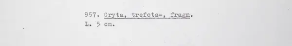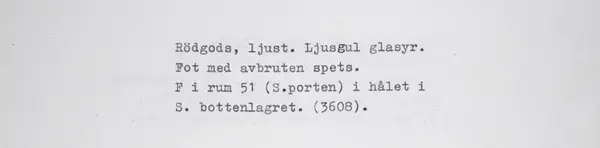 - Fyndnummer3608 (Se fyndjournal III för Kronobergs slottsruin, fältfyndnummer 3324 - 4274)
