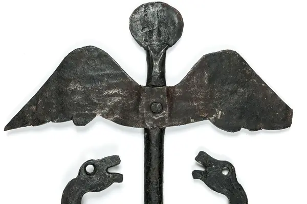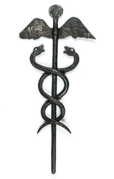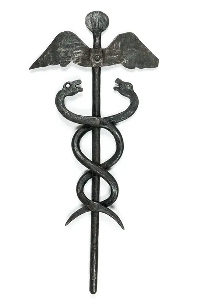 Merkuriestav även kallad kaducé är en symbol för fred, men även för handel och ekonomi. Staven består av två slingrande ormar och överst ett par vingar. Pehr Ennes var handelsman och en av statyerna på hans bostad bar därför på denna stav.