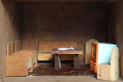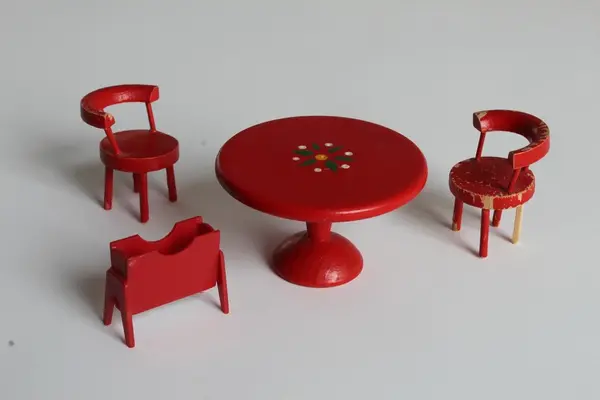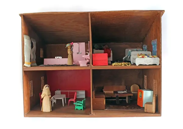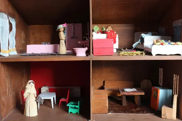 Dukkehuset med tilbehør bærer preg av å inneholde møbler og leker fra fem tiår, og 3 generasjoner som har lekt med dukkehuset.Eierskap