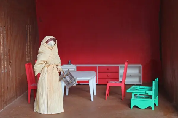 Torill skriver bak på dukkehuset: "Mye historie i disse gamle leker. Da var alt enkelt, og vi tok godt vare på det vi hadde. Penger var det lite av. 3/2-2013 signert Torill".