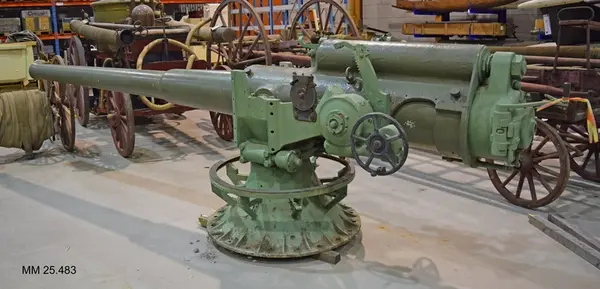 - Kanonen är tillverkad av AB Bofors år 1909. Kanoner av modell 1894 användes ombord på flottans torpedkryssare, hjälpkryssare, pansarbåtar typ Oden och monitorerna Tirfing och Tordön. Pjäserna var då avsedda som "antitorpedfartygsvapen". De tillfördes därefter kustartilleriet och användes i fasta artilleriförband, bland annat på Gotland och vid Vaxholm. Kanonen benämns som halvautomatisk och pjäsbemanningen kunde avfyra 7 till 10 skott per minut.