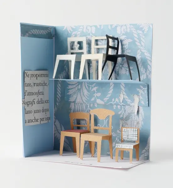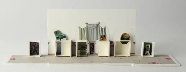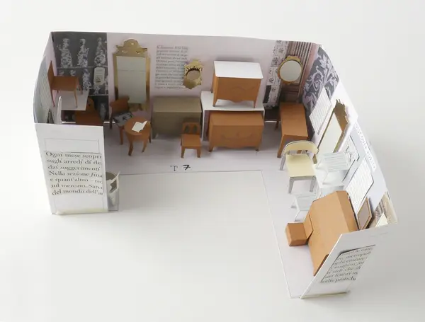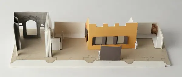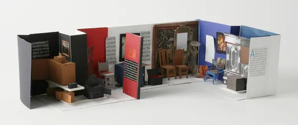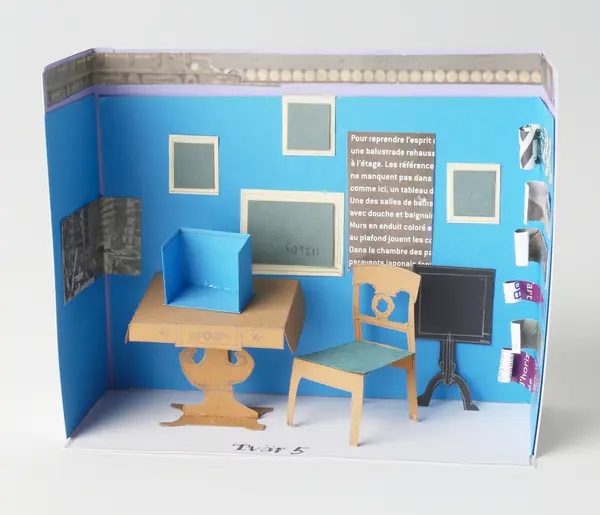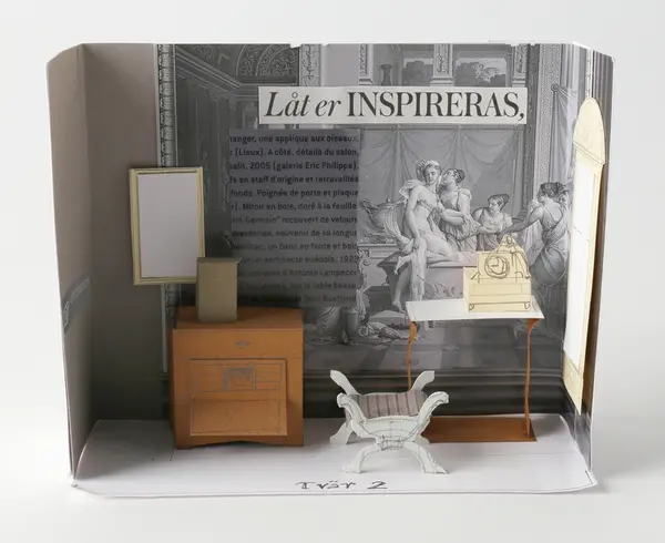 Detaljerade montermodeller med möbler och större föremål tillverkades på Österlen under nyåret 2013/2014: "De for i "platta paket" till Stockholm och sen klistrade jag ihop dem på museet. Modellerna var mitt sätt att möta museets krav på detaljritningar över föremålens installation i montrarna, samtidigt som jag själv ville få rumslig/mental överblick av alla möbler och större föremål. Och det visade sig ju sen att med modellerna på bordet behövde jag inte rita något mera, på ett effektivt sätt kommunicerades montrarnas inredning och möblering direkt. Som tur var tog alla medverkande i projektet genast till sig detta sätt att arbeta, och modellerna blev vårt gemensamma arbetsinstrument." (citat, e-post från Henrik Widenheim 2015-08-26).