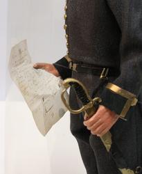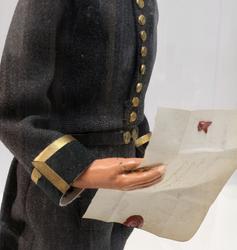 Modellen er rekonstruert på grunnlag av kgl. resolusjoner av 1815 samt orginal politiadjutanskkjole modell 1815 i Norsk Folkemuseums eie. Trolig den eneste av sitt slag.- ProdusentSandnes, Hallvard T.