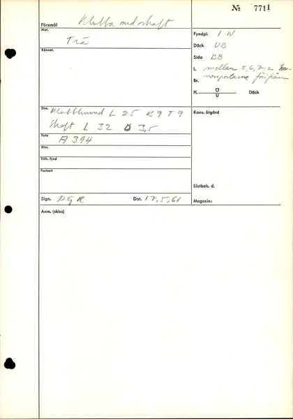 - Part of collection Vasamuseets föremål