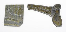 -9 stk. klisjeer som er reklame for pølser. En av dem er montert på en trekloss. 2 av dem er reklame knyttet til UKA i Trondheim (den ene brukt i 1971 og pakket inn i papir).