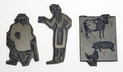 -7 stk. klisjeer som viser ulike figurer i ulike settinger. 3 av dem er montert på terklosser.