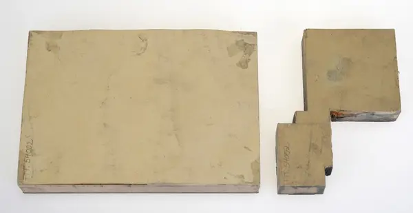 -1 stk. klisje som er vanskelig å tyde montert på trekloss. Produsert hos Aktirtrykkeriet.