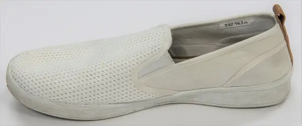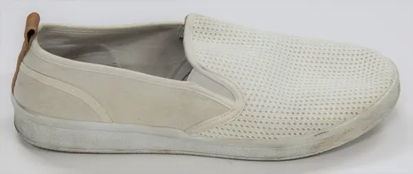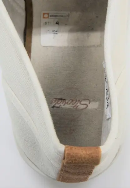 Skorna köptes av Zacharias i maj 2017 tillsammans med två andra par skor hos en av Skobutikskedjan Skopunktens butiker i Uppsala. Skopunkten har ofta erbjudande om att man kan köpa tre par och betala för två. Dessa skor, som kostade ca 200kr valde Zacharias för att de kändes somriga och var enkla och kunde passa till mycket. Zacharias har använt dem en hel del och ofta till jeans. Dock skulle han inte använda dem till vita eller mycket ljusa byxor. De har framför allt använts som vardagsskor. Då vita skor lätt blir smutsiga har Zacharias tvättat dem i maskin för att hålla dem snygga.