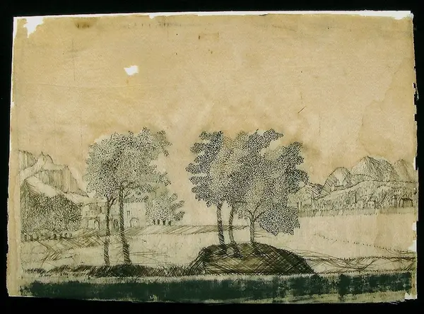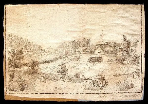 Dessa tavlor är sydda av Henrietta de Duse (?) 1806. Motivet är eventuellt från Värmland?
