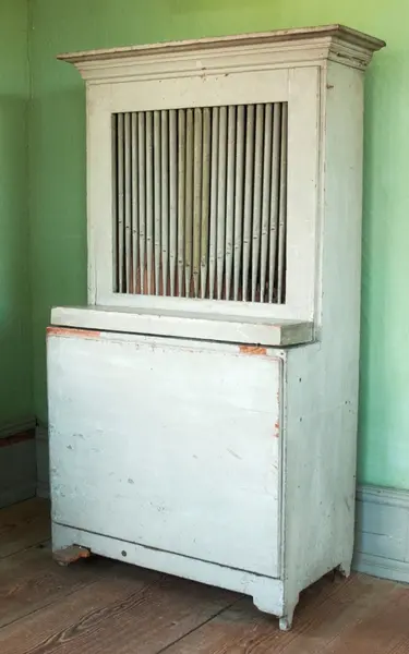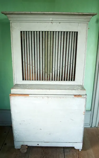 - "Orgelpositivet i Swedenborgs lustus, beläget i Skansens Rosengård. Orgeln tros vara byggd i mitten av 1700-talet men klaviaturen är av 1600-talstyp. Det finns bara en stämma i orgeln och den har 45 träpipor. Alla toner klingar en oktav högre än normalläge." Text i skivkonvolut "Skansens tre orglar" Nosag Records 2006.