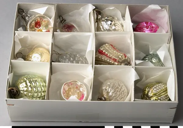 - Julkulorna kom till museet som gåva i februari 1989. Kulorna har använts i givaren, Maj-Britt Hemlins, hem sedan 1930-talet, kanske tidigare.