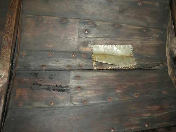 Gamal innkomst, ikkje museumsnummer.Produksjon: 1880 - 1890 (Ut i frå typen naglehovud i saumen, men usikkert.)