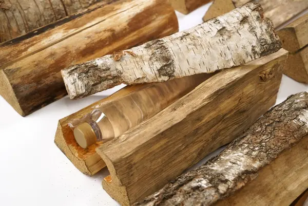 Ett lass bjørkeved, der vedskiene inneholdt sprit.