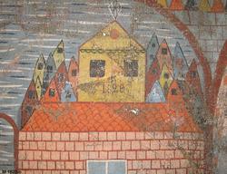 Bonaden är målad 1828 av Sven Nilsson, även kallad Trane-Sven, från Härnäs i Blekinge som tillhör den s k Blekingegruppen.