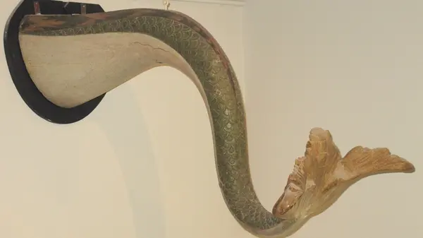 Slupen byggd av F. H. af Chapman för Gustav IV:s räkning. Båten lär ha förstörts efter ett högvatten 1809. Kanske tog man då tillvara huvudet och stjärten eller också förvarades de redan på annan plats. Ritning till slupen daterad 1797.