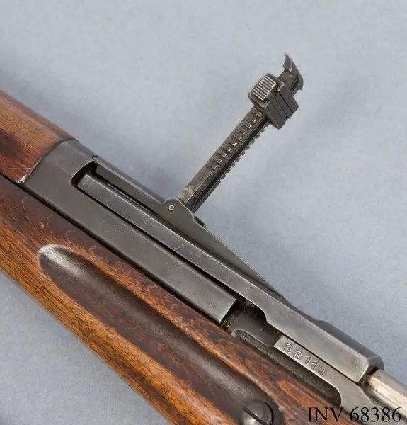Exemplaret är en gåva från Johan Marcks von Würtemberg vars far Stig Facht deltog i Svenska frivilligkåren i Finland under andra världskriget. Vapnet har fram tills inlämnandet till Armémuseum förvarats i hemmet. Stig Facht genomgick sin militära grundutbildning vid kavalleriet vid K3 i Skövde. 1938 var han redaktör för Engelsk-Svensk militärordbok. 1939 tog han värvning som löjtnant i Svenska frivilligkåren och stred i Finland 1939-1940. I samband med dessa insatser togs det aktuella vapnet från en stupad rysk soldat i Finland. Facht tjänstgjorde då som 1. adjutant vid II. Stridsgruppen och skrev följande om om strapatsen i nordöstra Finland från Vaaranlahti mot Käsmänperä över den frusna Kemijärvi den 25 februari 1940. Källan är hämtad ur boken "Svenska frivilliga i Finland 1939-1940" (Militärhistoriska förlaget 1989), sid 98:
