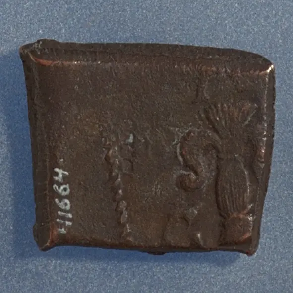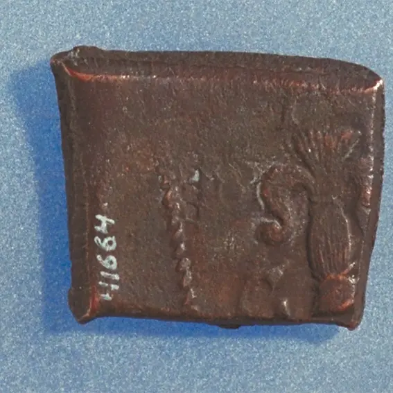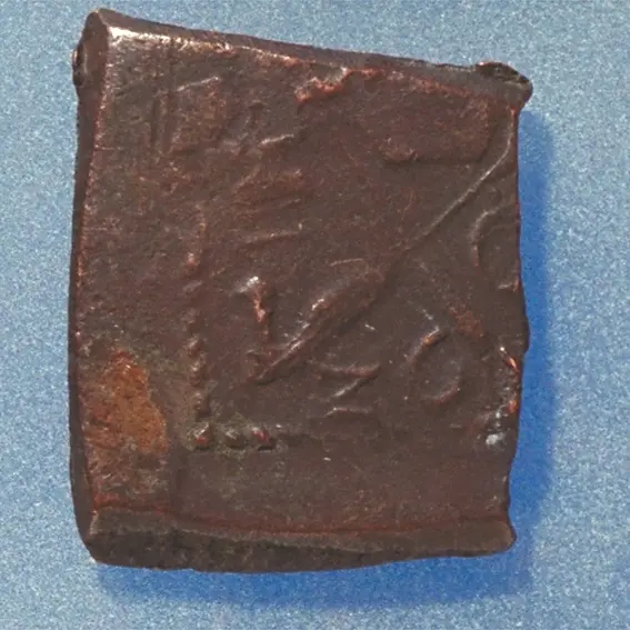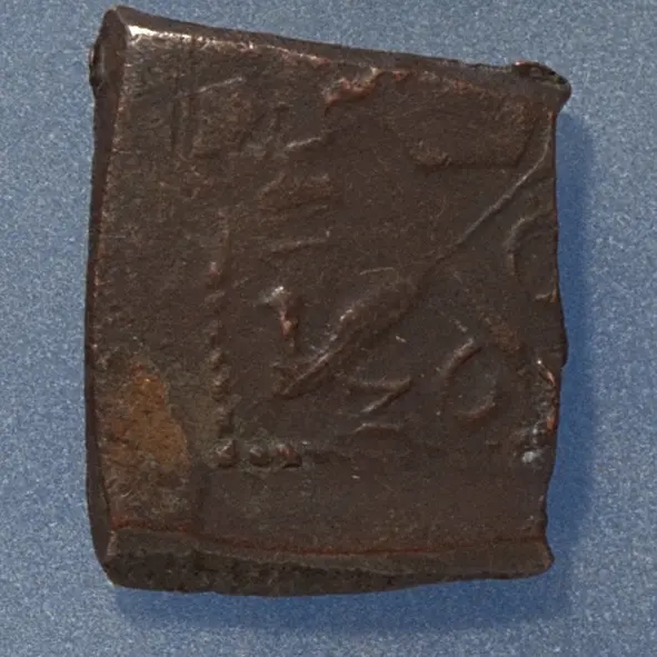 Frånsidan: två korsade pilar under en krona, delvis synliga.
