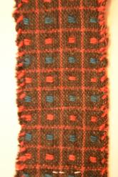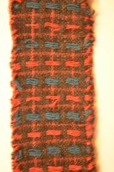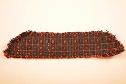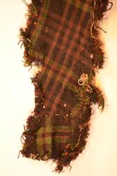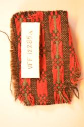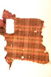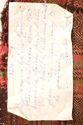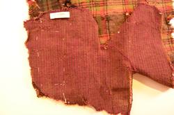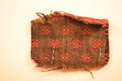 - På lapp festa til stoffbitane har Ragnhild Hegge skreve: "Bygningen hjå Ola Haugene, Volbu, vart reven våren 1963. Eiliv Odde Hauge fann desse. Det var brukt til å tette rundt glasi. Bygningen omlag 80 år gamal."