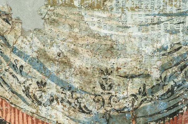 Målningen funnen i gårdshus vid kvarteret Kollegan 2, i samband med rivning 1983.