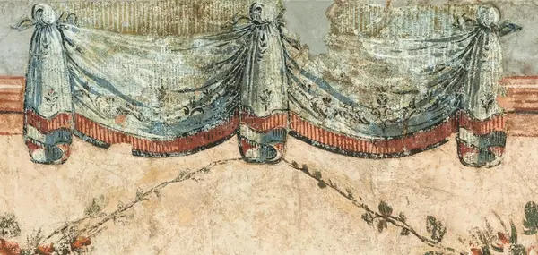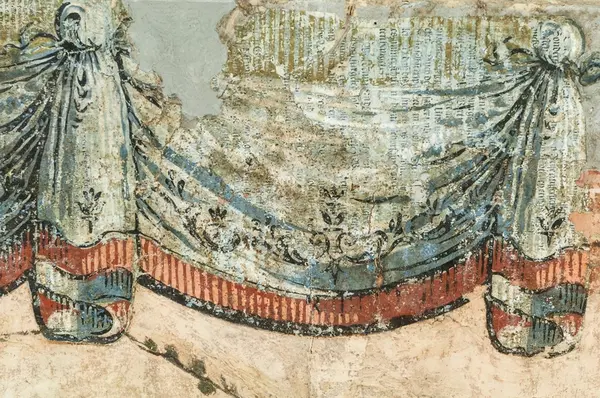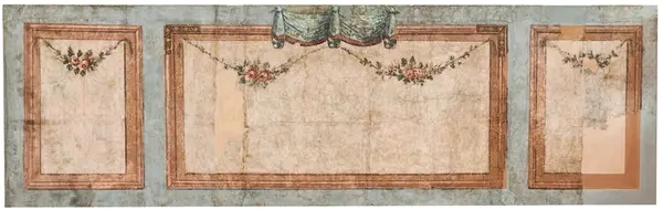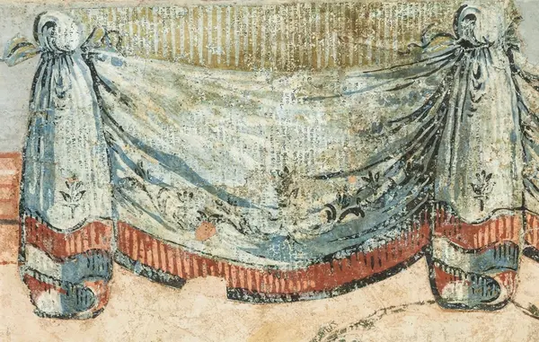 Väggfälten uppspända i samband med konservering. Resterande väggfält från samma svit, se GM 27447