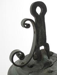 Laget som kopi av originalgjenstanden som tilhører museum i København,, for utstillingen "Med slaver elfnben og gull" ca. 1998. Støpt på klokkestøperi i Skåne.- Produsent (K)Borås Metallgjuteri, v.Pekka Hølsøsikker