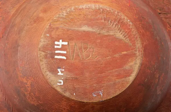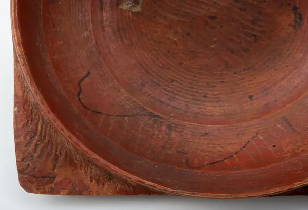 L.22. Br. 20,5. Trä. Rödmålad. 4 hörn. Märkt: N.B.S. Föremålet helt. Hede. Bohusl.