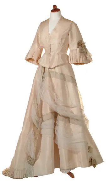 - Marie Plahtes kjole brukt i hennes stedatter Maggies (Margaret Ann "Maggie" Plahte) bryllup m Christian Skredsvig, 1882.