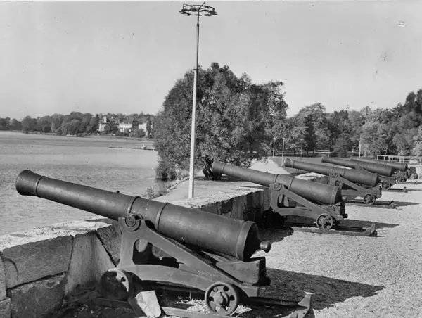 Dessa 6-pundiga kanoner av Carl Fredric Aschling är gjutna vid Hellefors Styckebruk, dagens Hälleforsnäs (Flens kommun) i Södermanland. Kanoner från Hellefors Styckebruk märktes H, HF eller HF.SB. Bruket var ett av landets priviligerade styckebruk.