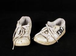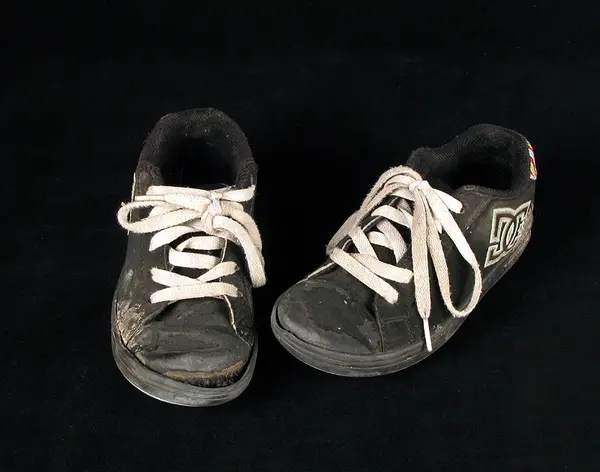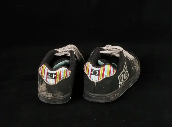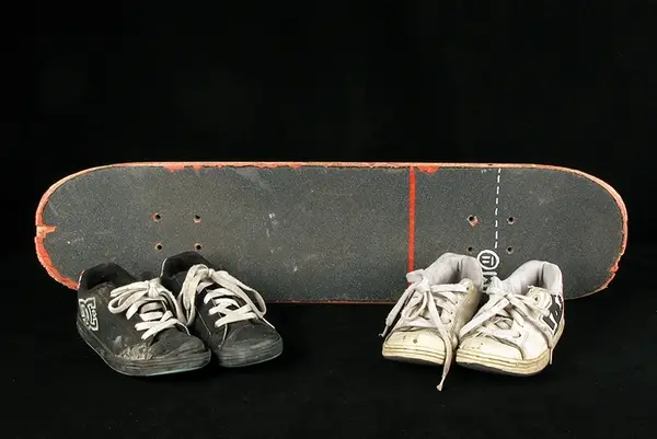 Gåva av Hedda Berander som använt dem när hon åkt skateboard i Falkenberg. Hedda är en av de ungdomar som intevjuades i utställningen.