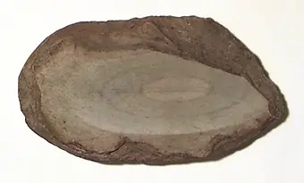 Hittad vid dikesgrävning 1834. Tidigare angiven utan fyndort. Beskrivning och mått överensstämmer väl med Lignells beskrivning av Brynsten av kisel, nr 2 i Lignells donation 1839-03-11. Fyndet är dessutom avritat i Lignells "Carlstads stifts fornminnen" nr 5.