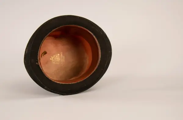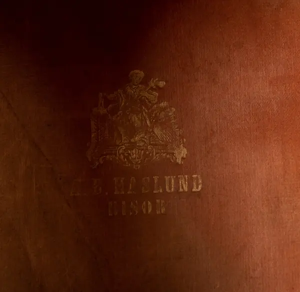 På innsiden av hatten står det: A. B. Haslund - Risør. Om det er navnet på eieren eller produsenten er ikke lett å vite, men det finnes en A. B. Haslund i Risør som drev med eksportering av is. Dette kan du lese mer om her: