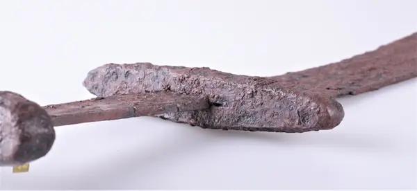 Endel af et Sværd fra Vikingetiden. Sværdet fandt jeg paa Veikanten paa Veien mellem Dyhren og Rognstad – lidt vestenfor Bækken som overskjærer Veien – den 28d April 1907 da vi reiste paa Amtsskolefesten paa Breidablik.