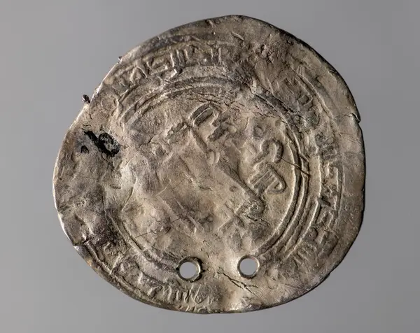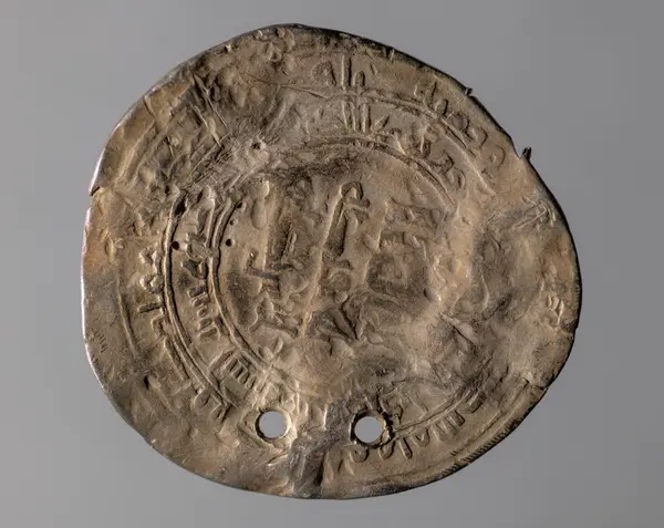 Arabiskt myntfragment.1) Mynt, vikt: 2,2 gr. Utställt.2) Myntfragment, vikt: 0,6 gr. Magasinerat.3) Myntfragment, vikt: 0,9 gr. Magasinerat.4) Myntfragment, vikt: 0,5 gr. Magasinerat.5) Myntfragment, vikt: 0,3 gr. Magasinerat.6) Myntfragment, vikt: 0,7 gr. Magasinerat.7) Myntfragment, vikt: 2,7 gr. Utställt.8) Myntfragment, vikt: 1,0 gr. Magasinerat.9) Mynt, vikt: 4,1 gr. Utställt.Fynd från Närke, Edsbergs sn. Kvisserud, Eketorp.Magasinerat år 2000.Utställt i Klenodkammaren, 2000-06-18.Digital bild finns på CD 8-9.