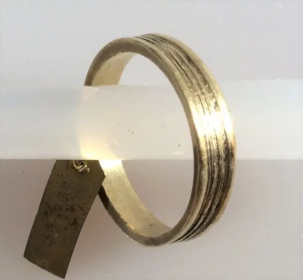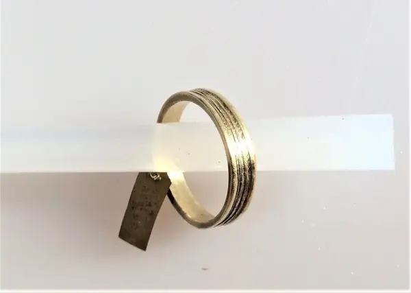 4 forskjellige Ringe, først 2 Fingerringe af Guld, den ene muligst en Betalingsring de 2 andre til ukjendt Brug af Bronce.