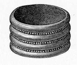 2 fingerringer av guld, spiralringen R. 303 men med tilspissede ender og R. 305.
