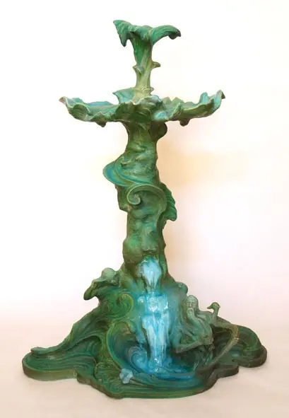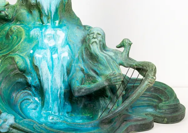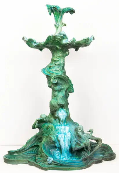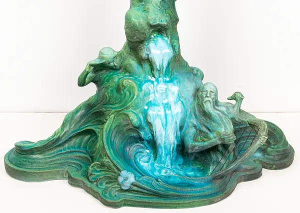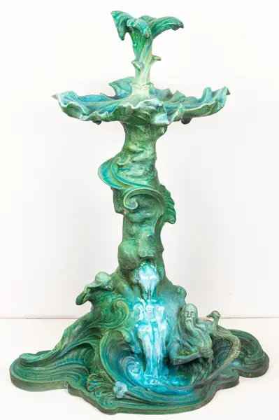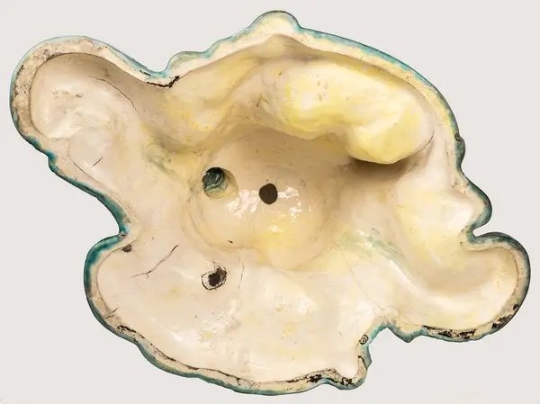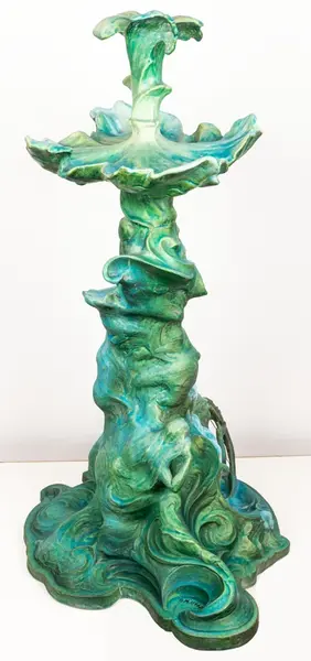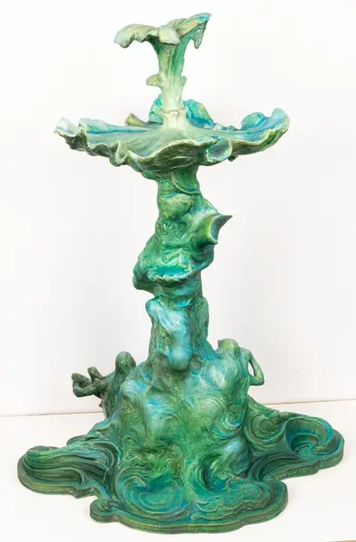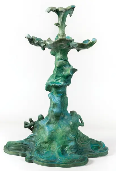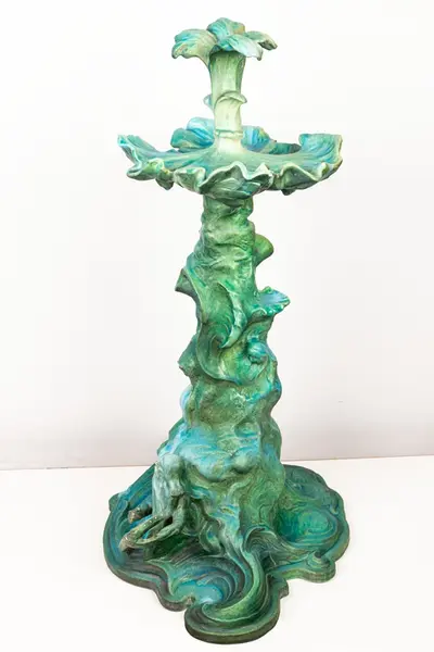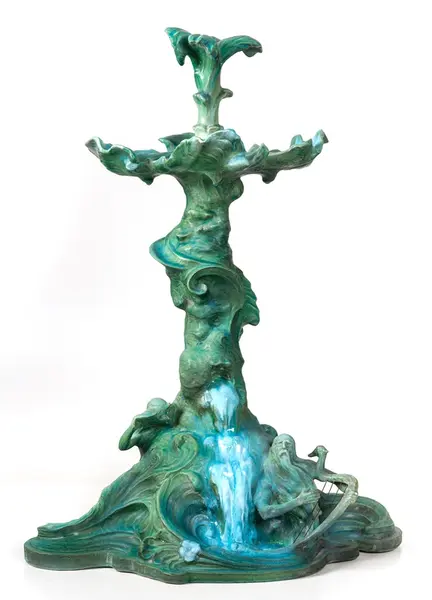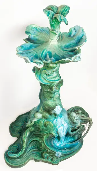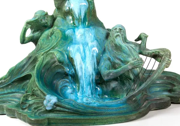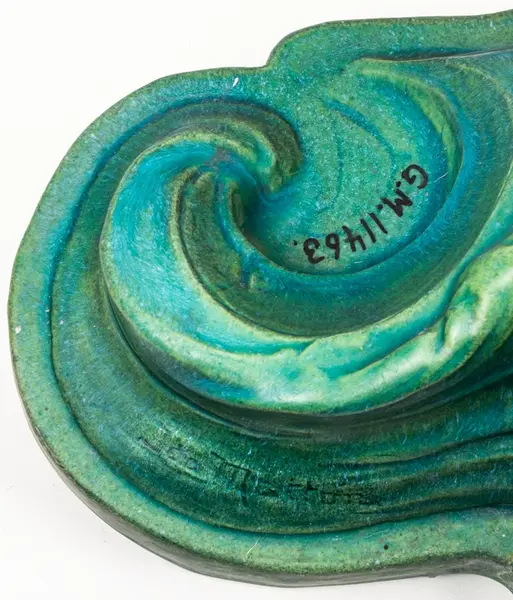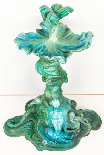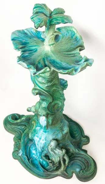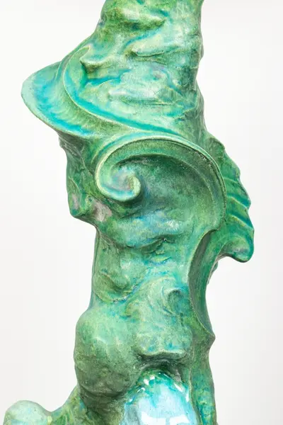 Bordsuppsats i keramik med grön glasyr av den franske keramikern Edmond Lachenal efter en originalskiss i gips av Ida Matton.- TillverkareLachenal, Edmond (1855 - 1948)