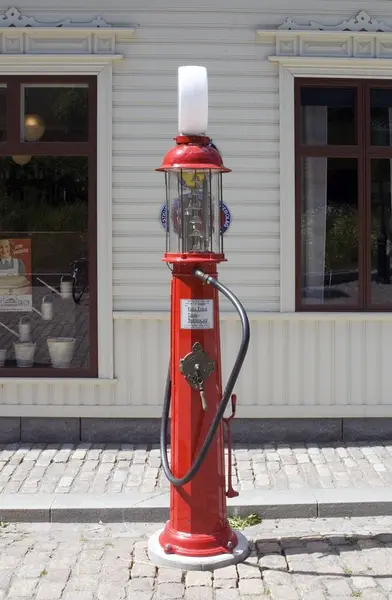 Pumpen skall enligt säljaren ha stått invid väg 40 öster om Ulricehamn fram till 1939. Vilket bensinmärke den användes till är okänt.